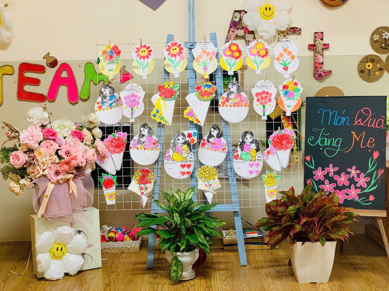 . Bằng đôi bàn tay nhỏ xinh và trí tưởng tượng phong phú, các bé đã tự tay chọn màu sắc, dán hoa, tô màu… tạo nên những chiếc thiệp xinh tươi, rực rỡ, tràn đầy yêu thương. Mỗi tấm thiệp không chỉ là sản phẩm sáng tạo mà còn chứa đựng tình cảm chân thành mà các con gửi đến mẹ yêu – người phụ nữ tuyệt vời nhất trong lòng con .