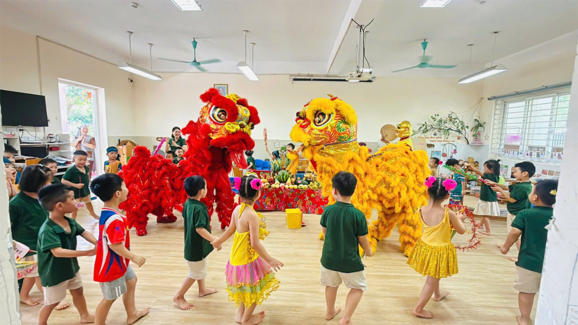 Các bé được tham gia nhiều hoạt động hấp dẫn: rước đèn, xem múa lân, phá cỗ Trung thu, cùng nhau thưởng thức bánh nướng, bánh dẻo. Đặc biệt, những tiết mục văn nghệ do chính các bé biểu diễn đã mang đến không khí vui tươi, hồn nhiên và ấm áp tình thân.