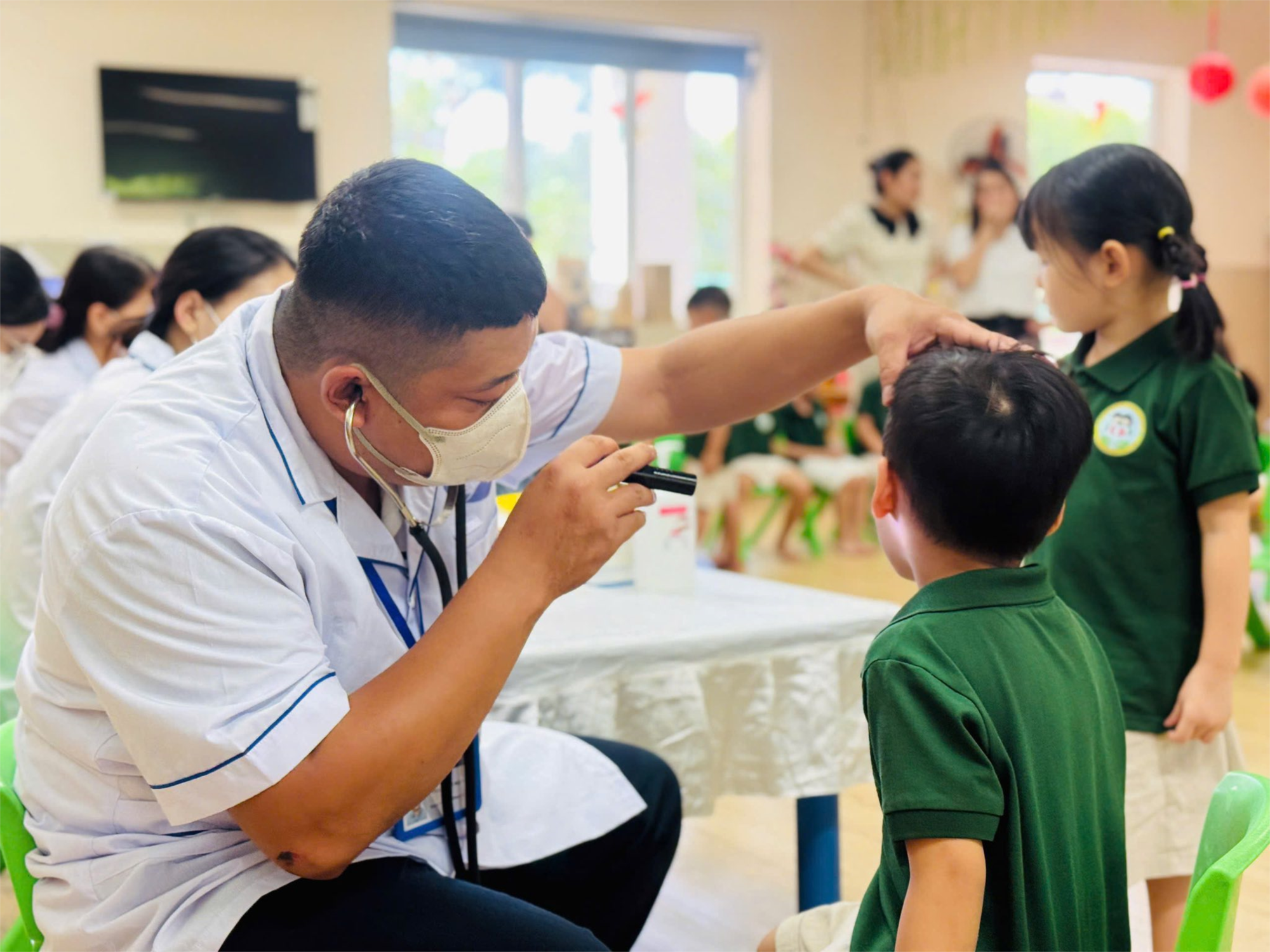 Hoạt động khám sức khỏe định kỳ được nhà trường duy trì thường xuyên nhằm giúp phụ huynh nắm bắt kịp thời tình hình sức khỏe của con, đồng thời nâng cao nhận thức trong việc chăm sóc, nuôi dưỡng trẻ toàn diện cả về thể chất lẫn tinh thần