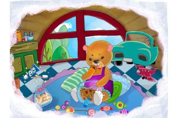 Hôm sau, Gấu mẹ phải đưa Gấu con đến bác sĩ khám bệnh. Bác sĩ bảo: “ Này Gấu con, răng cháu sâu nhiều quá, phải chữa ngay thôi. Nếu để lâu sẽ bị sún hết đấy. Cháu nhớ là không nên ăn nhiều bánh kẹo, nhất là vào buổi tối. Hằng ngày phải đánh răng trước khi đi ngủ và sau khi ngủ dậy.