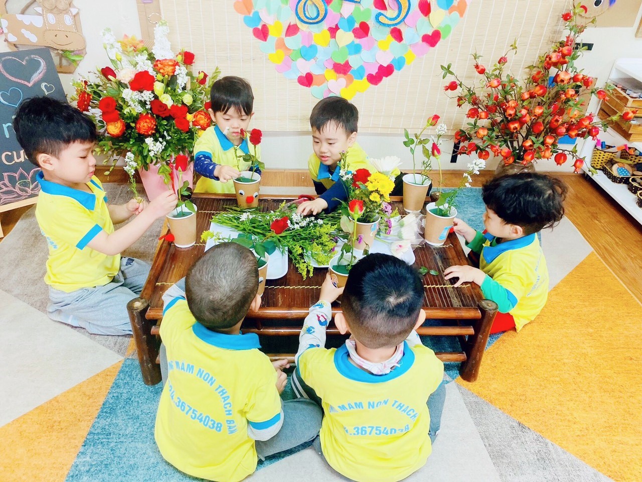 Hôm nay, hòa chung với không khí vui tươi, háo hức của ngày 8/3, cô và cháu lớp mẫu giáo bé C1 cùng cắm hoa tặng cho bà, cho mẹ, cho những người phụ nữ mà bé yêu mến.