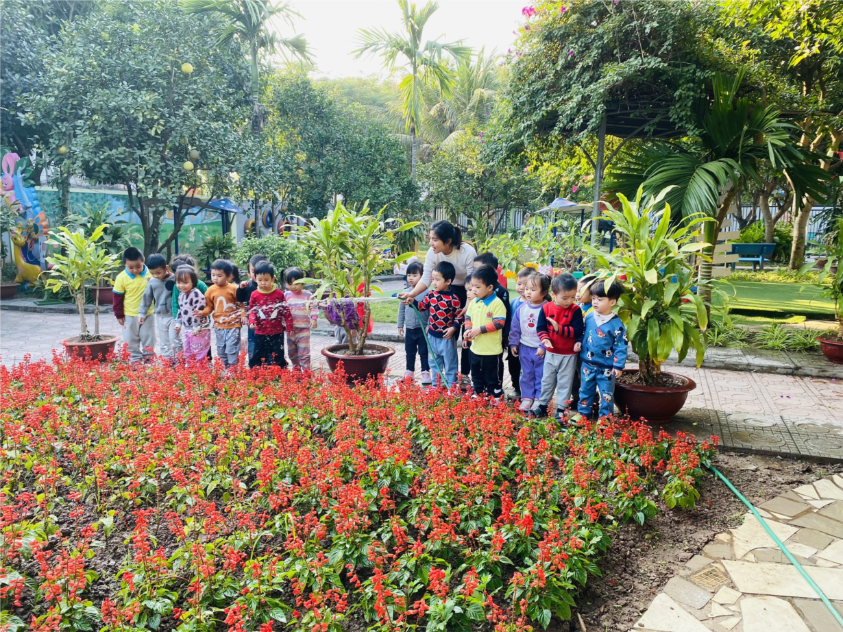 Hoạt động ngoài trời của các em bé mẫu giáo bé C4 diễn ra tràn đầy năng lượng ở sân trường, khi thì trẻ được hòa mình vào thiên nhiên rồi thích thú reo vui khi phát hiện ra điều mới lạ, khi thì cùng cô tham gia các trò chơi vận động, được vầy bể cát, được thăm quan vườn trường ngắm nhìn những trái bưởi chín xum xuê, bắt những chú câu tí hon cho cây bắp cải, …