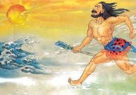 Khoa Phụ bước những bước dài, băng mình đi như bay về phía cánh đồng bao la, đuổi theo mặt trời đang ngả về phía Tây. Chớp mắt, người khổng lồ đã vượt được vài nghìn dặm.